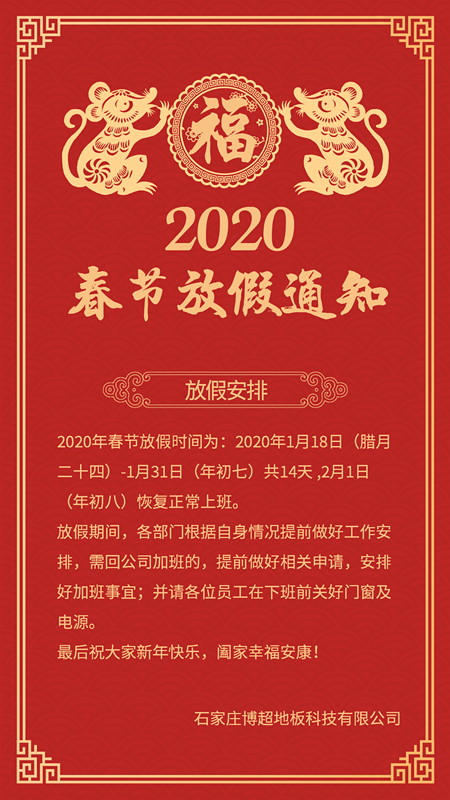附:博超懸浮地板廠家二O二O年春節放假通知