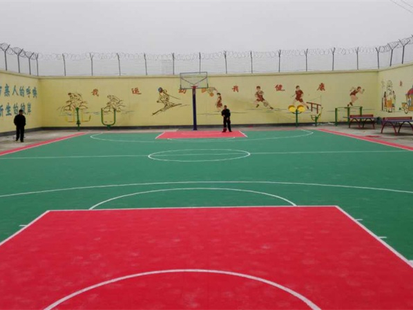 2、安裝簡單,體現它的“拼裝”性能,邊緣以鎖扣銜接,基本屬于純手工作業。工期短,一個500㎡的籃球場,包括畫線四個人一天即可施工完畢。平整水泥地即可。無保養期,安裝好即可使用。