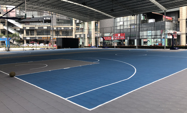 1.安裝簡單,體現它的“拼裝”性能,基本屬于純手工作業,不需要專業人員安裝。工期短,一個600㎡的籃球場,包括畫線四個人一天即可施工完畢。對基礎要求也不高,平整水泥地即可。